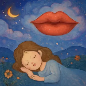 Dreaming of speaking or kissing with large lips, symbolizing passionate communication or emotional connection.