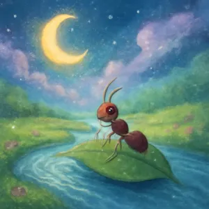 A dream where an ant is riding a leaf and following the river